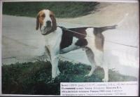Номер ВПКОС: 1245/92 № Свидетельства на охотничью собаку: 65/чэг Окрас: Черно-пегий в румянах Дата рождения: 19.04.1990 Экстерьер: оч. хор. Дипломы: III Класс: второй |